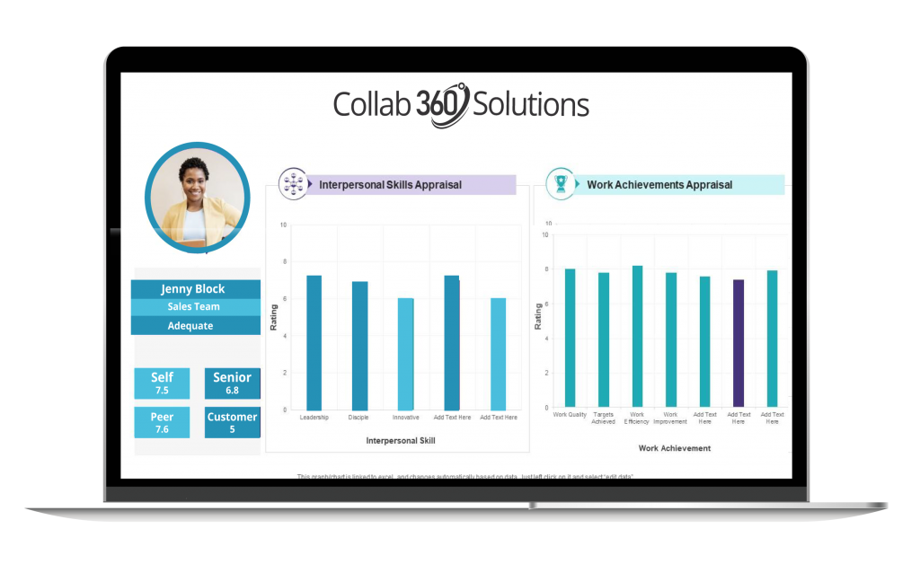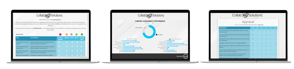 Conduct collaborative 360° Leadership surveys to establish the strengths and weaknesses in your management team. Surveys are mapped by algorithm to direct-reports and can be randomised and also performed anonymously. Results are published in real-time to Dashboards and reports and the data is available by export and API.